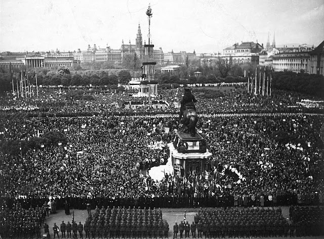 Cheering crowds greet the Nazis in Vienna.